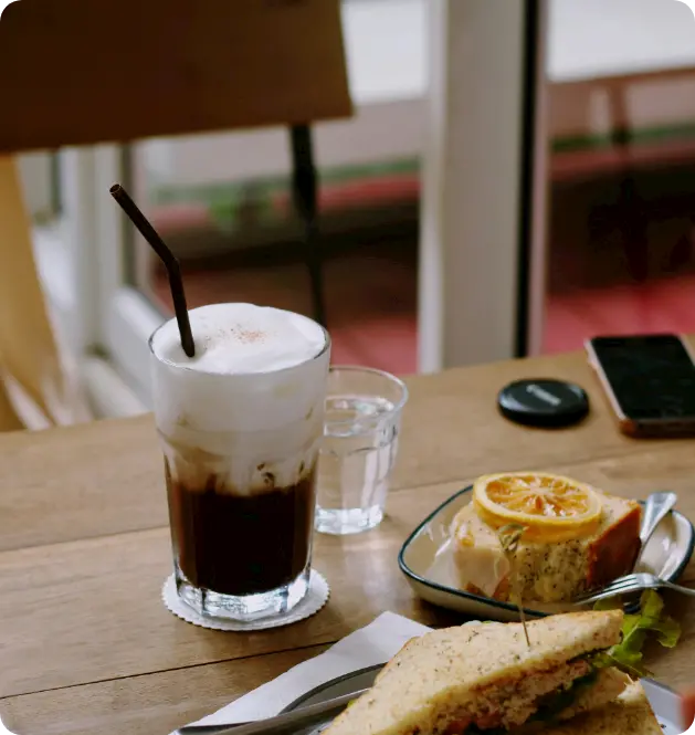 Sandwiches frais et snacks : une sélection de sandwiches fraîchement préparés, des snacks et des boissons pour reprendre des forces.